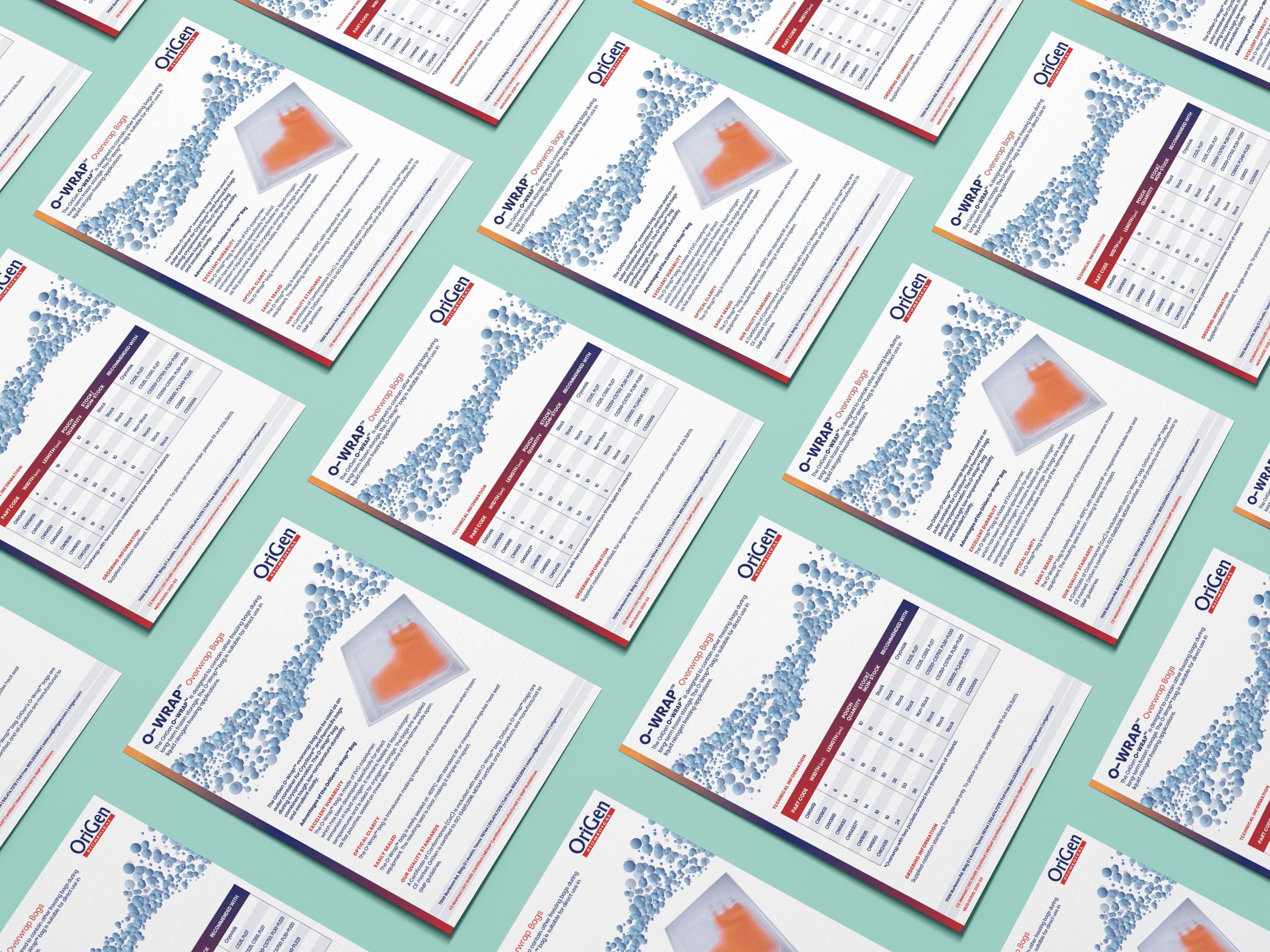 Once that look was solidified, Origen was looking to create a new, fresh face at tradeshows to promote their products. We took on the challenge to redesign sixteen product brochures and booklets, as well as multiple trade show materials including pop up banners and collateral. Their final look was polished, straightforward and eye-catching.